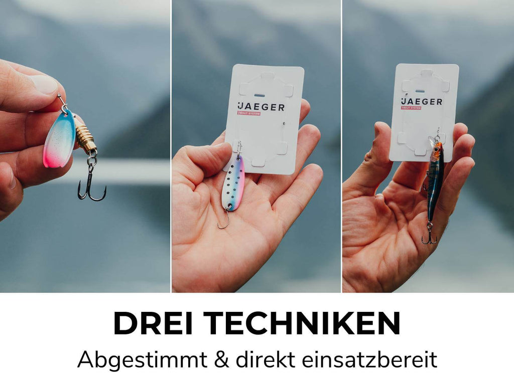 Pour les pêcheurs qui veulent attraper des truites de manière ciblée et efficace. La FORELLEN BOX est votre solution tout-en-un pour ruisseaux, lacs et étangs à truites – entièrement préassemblée et prête à pêcher. Avec des appâts soigneusement sélectionnés comme le SALTA, NEMA et THOR MINI ainsi que le polyvalent SNAP RIG, vous êtes prêt en quelques minutes, sans préparation compliquée. Conçue pour une efficacité maximale, la technologie JAEGER QuickStart garantit que vous attraperez des truites immédiatement – il suffit de déballer et de commencer.