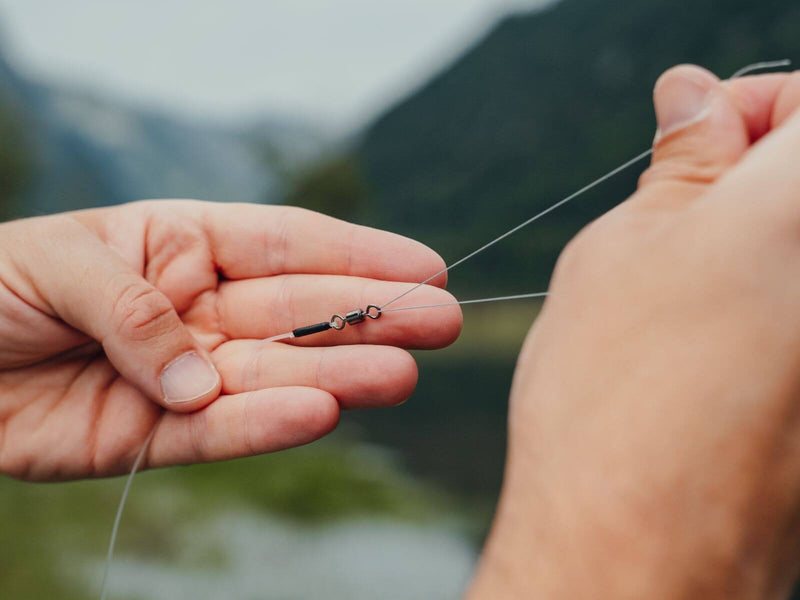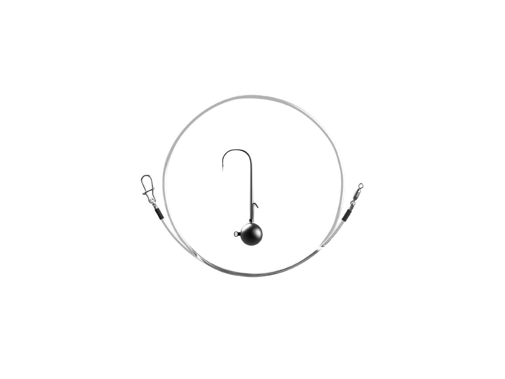 Der Jig Head wird einfach über den Snap des Vorfachs eingehakt – so bist du in Sekunden startklar. Das schnell sinkende Tungsten stellt den Köder optimal im Zander-Revier dar, während das robuste Fluorocarbon für eine natürliche Präsentation sorgt. Jede Montage wird professionell gebunden, um bestmögliche Qualität und Sicherheit zu gewährleisten.